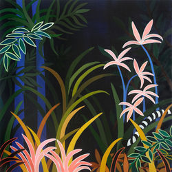 My paintings are inspired by my childhood memories of growing up in a tropical paradise amidst exotic flora and fauna and visits to the mangrove forests. I have also been influenced by the French post impressionist painter Henri Rousseau who painted dreamlike exotic scenes with a primitive yet sophisticated style.